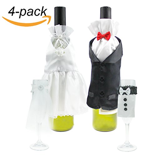 Micirc 4 PCS Wedding Gifts For Bride and Groom Wine Bottle Mini Wedding Dress Wedding Decorations