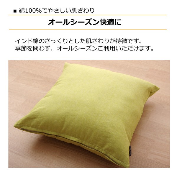 綿100%のクッションカバーです。インド綿を使用しています。糸の風合いで無地ですがマット過ぎず、シンプルで飽きの来ないデザインです。お持ちのクッションに使用するだけでイメージチェンジができます。汚れが気になる際は洗濯機でも洗うことができるためお手入れが簡単でいつでも清潔にご使用いただけます。