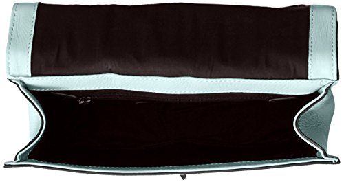 Leather bag featuring fold-over flap with quilted circles and raised edging