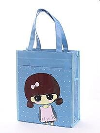 Durable Shopping Bag, Blue Wear-resisting Hand Bag Printing Lovely Little Girl for Supermarket/ School Bag --- Can Put Water Bottle
