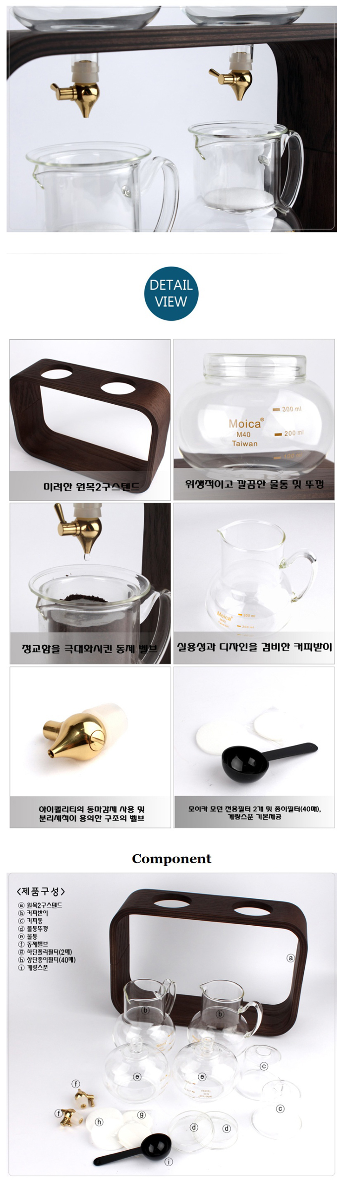 High-quality material(Material: Wood, Heat-Resistant Glass, Cooper Valve)
