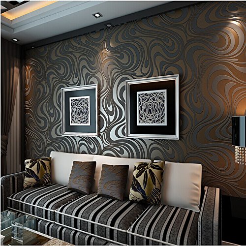 QIHANG Modern Luxury Abstract Curve 3d Wallpaper Roll Mural Papel De Parede Flocking for Striped Black&brown Color Qh-wallpaper 0.7m x 8.4m=5.88㎡