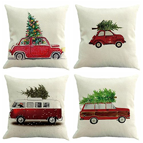 Package content:4 pack Christmas cushion covers This pillow cover has an invisible zipper Great gift for friends,couples,workmates,etc. Decorate your home with this attractive linen cushion cover Feel free to contact us If you have any questions or concerns 0