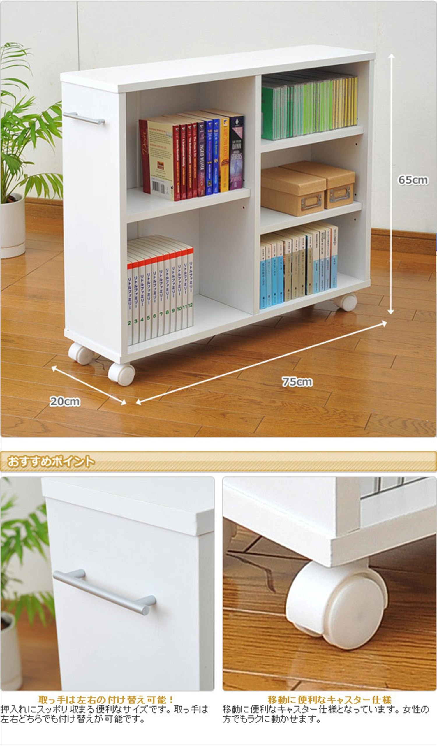● Size perfect for closing in the closet (height 65cm) ● Because it is equipped with wheels ● Easy to put in and take out ● Handles can be mounted on either side ● Rear makeup available ● Assembly (Assembly time: about 20 to 30 minutes)