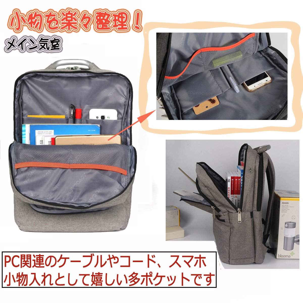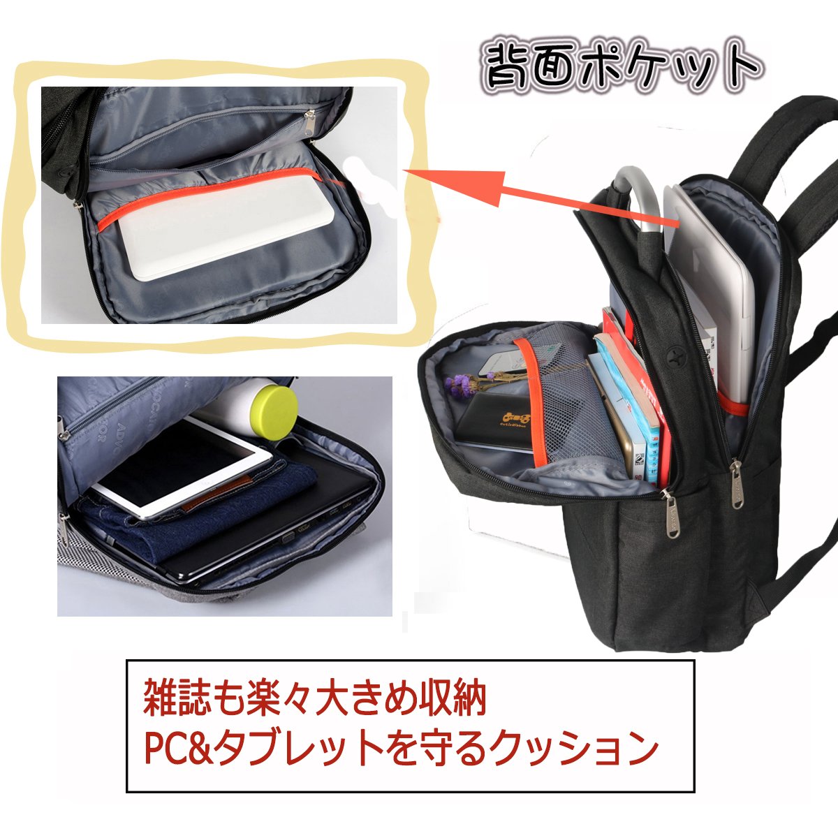 You can store PC, tablet, magazines etc by deploying sleeve pocket inside.
