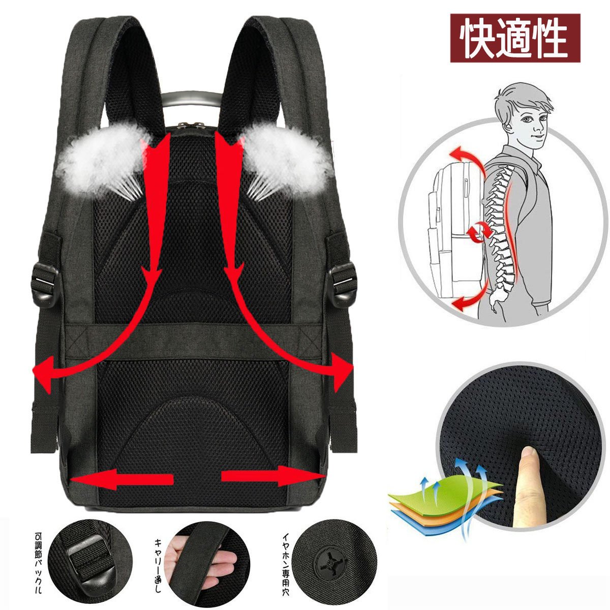 : The entire back has cushioning properties, so that comfort and stability based on human engineering, breathability is also considered, so that it will not be difficult for a long time to carry on.