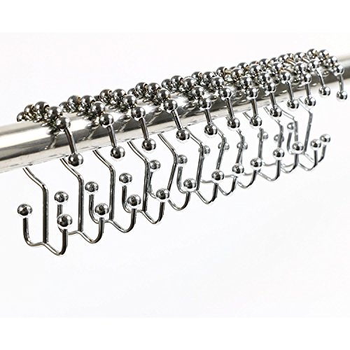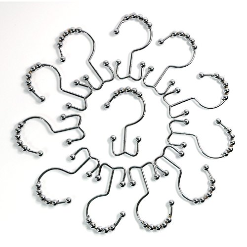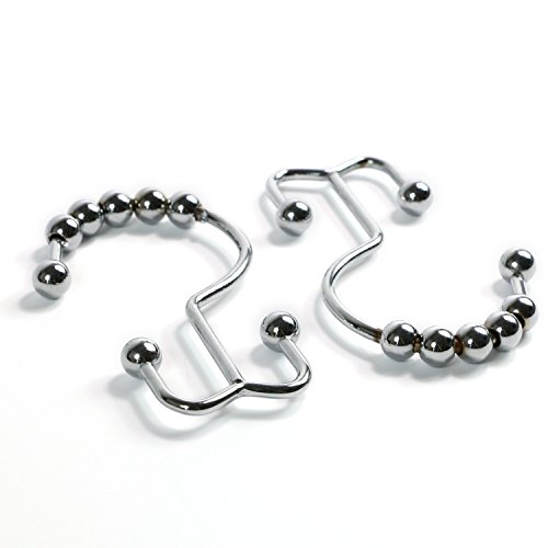 Landisun 12pcs Bathroom Shower Rod Curtain Ring Hooks Hangers Double Glide Shaped
