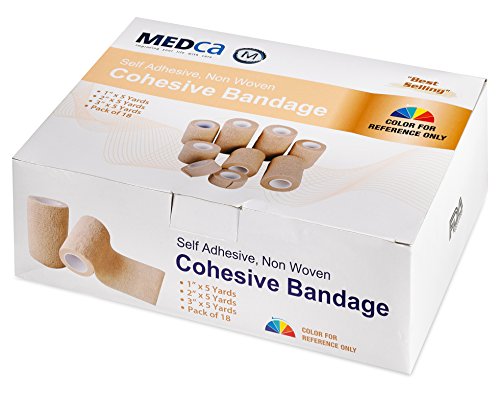 MEDca Tape Wrap, Self Adherent Rap Tape, Adhering Stick Bandage, Self Grip Roll 1 Inche 2 Inch and 3 inch X 5 YARDS 6 of Each Size Total of 18 Rolls "Skin Color"