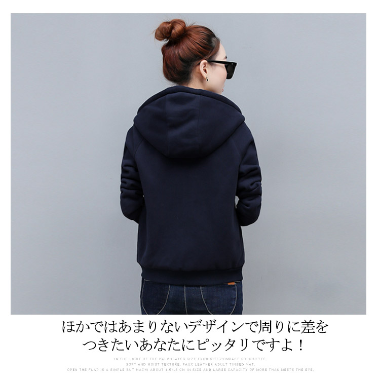 | 大人カジュアルフード付きパーカーです。ボリュームシルエットの襟が防風効果が演出します。裏地部分がふわふわとした細かい毛足が生む、極上の肌触りです。大人女の子の体型に合わせて、いちばんキレイに見える生地の厚さ・シルエットを追求!カジュアルなのに可愛さも取り入れた優秀な一着です。厚手の素材なので温かくて秋冬コーデに大活躍してくれる!デニムやスカートなど手持ちのボトムスであわせるだけでお洒落な演出してくれる!ほかではあまりないデザインで周りに差をつきたいあなたにピッタリですよ! | |