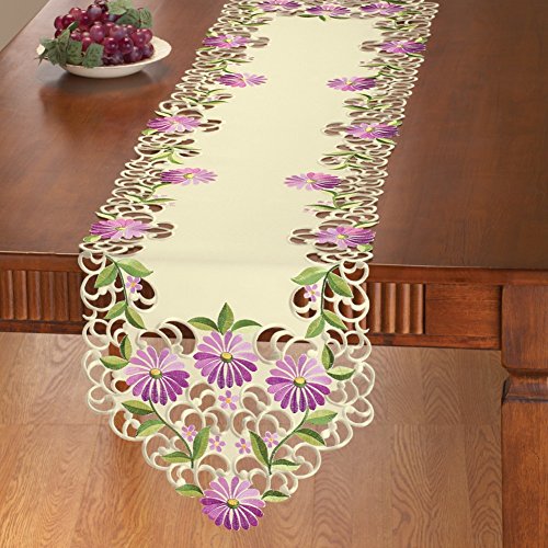 -. Feature : Embroidered daisies, greenery and detailed cut-work create an intricate border on these table linens / Use alone or with a coordinating tablecloth underneath (sold separately) / Made from machine washable polyester / Available as either a Runner (69 1/4"L x 13 3/4"W) or a Square (34"Sq.) / Shop with confidence! For over 50 years, Collections Etc has been bringing unique, whimsical, inspirational, and home solution products to customers. All Collections Etc products come with a 60 day, easy return policy and 100% satisfaction guarantee
