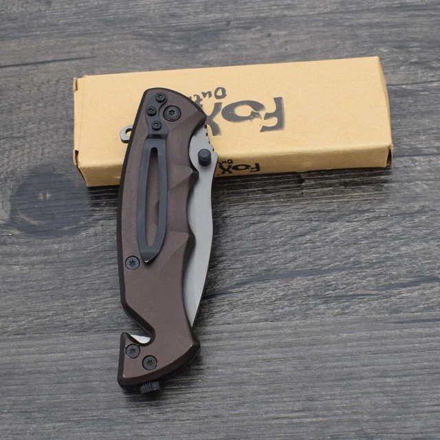 | [해외] 생존 칼 여우 포켓 접는 스틸 블레이드 나이프 알루미늄 합금 핸들 사냥 전술 나이프 캠핑 야외 EDC 도구 F01 |