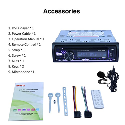9: packing list:1*12V DVD Player 1*Power Cable 1*Operation Manual 1* Remote Control 1*Strap 1*Screw 1*Nuts 1*Keys
