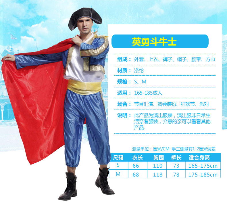 万圣节服装cosplay成人装扮舞会演出服西班牙斗牛士成人派对服装