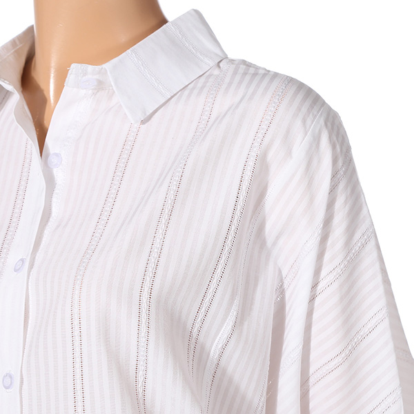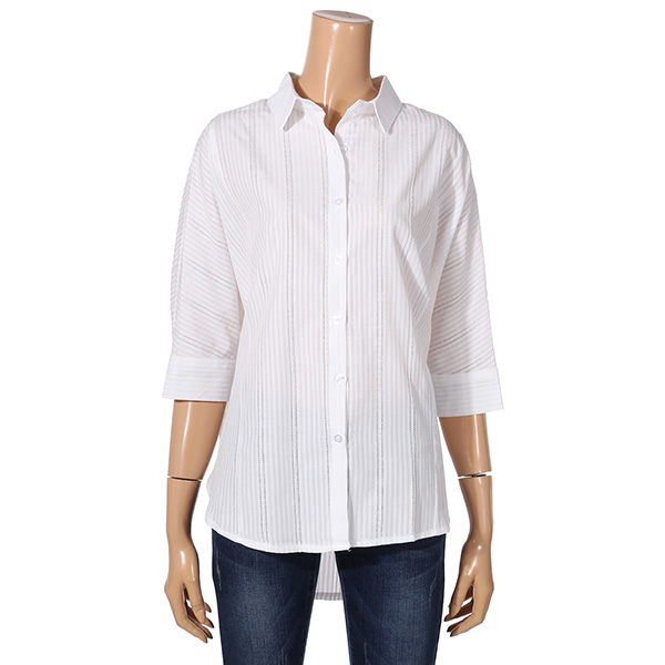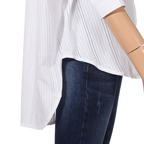 ▶ S/S 시즌에 즐기기 좋은 멋스럽고 세련된 심플한 디자인의 분위기 있는 핏이 예쁘게 떨어지는 깔끔하고 예쁜 스트라이프 버튼식 블라우스 셔츠를 소개 해드립니다^^ 스트라이프 패턴이 매력적인 아이템으로서 어깨 절개선이 없어 편하게 착용가능하며, 소매기장은 팔꿈치를 가리는 정도의 기장감으로 한 여름에도 착용가능한 셔츠입니다^^ 아이보리는 레이스같은 느낌으로 화사하게 착용가능하시며, 스트라이프같은 경우는 단품만으로 포인트를 주시기 좋은 아이템입니다^^ 앞뒤 언발의 엉덩이를 가리는 기장감으로 편하게 착용 가능하시며 컬러는 아이보리 , 네이비 두가지 준비되어 있습니다^^