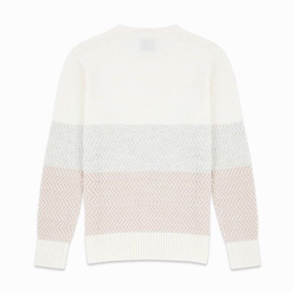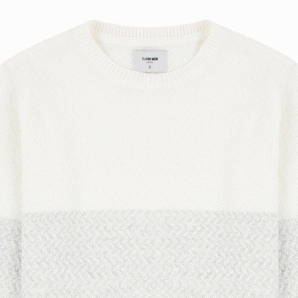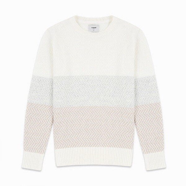 배색이 돋보이는 라운드 니트 입니다.조직물 느낌의 짜임과 연한 배색으로 단독착용 및 아우터의 이너웨어로도 예쁘게 연출하실 수 있는 니트 입니다 *^^*