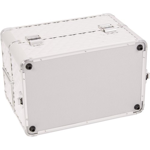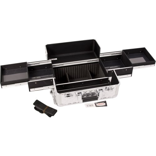 - Feature : High Quality Aluminum Frame with Reinforced Steel Corners / Heat Resistant Exterior Shell To Keep Your Cosmetics Secure and Safe / Spacious Center Compartment/Storage Area with Adjustable Dividers / Four (4) "Easy Slide", "Easy Clean" Extendable Trays / Two (2) Steel Locks with Keys For Enhanced Security