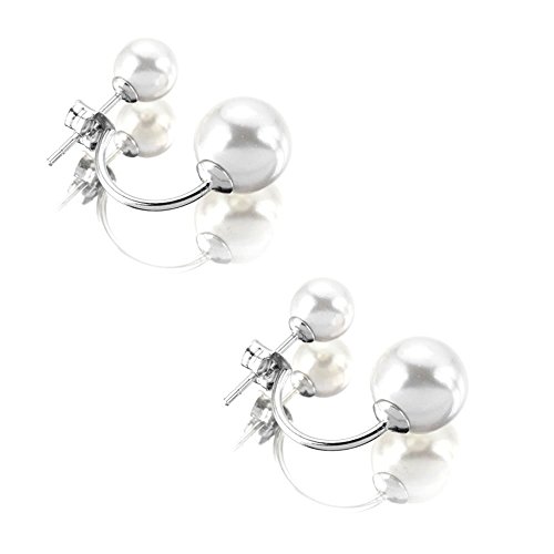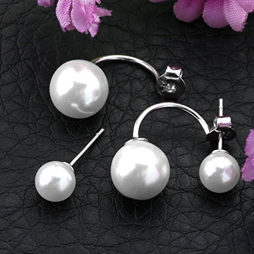 - Title : Hotshopping Fashion Jewelry 925 Sterling Silver Double Pearls 8mm Hoop Stud Earrings for Women Girls