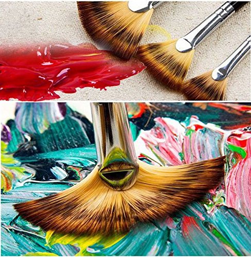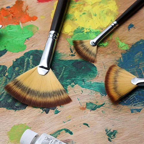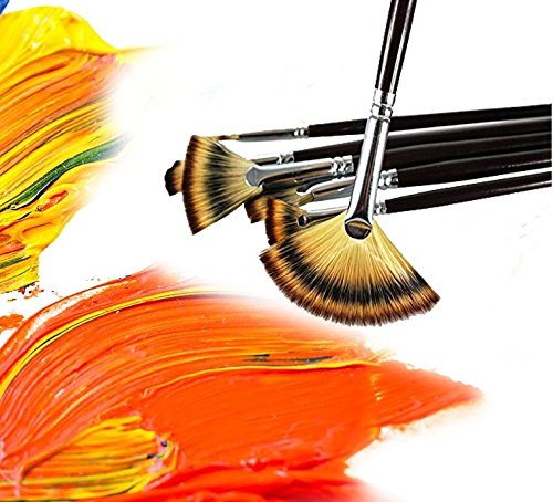Paint Brush Set Artist Fan Brush Wood Long Hands Painting Brush Set for Oil Paint Acrylic Paint 6 PCS