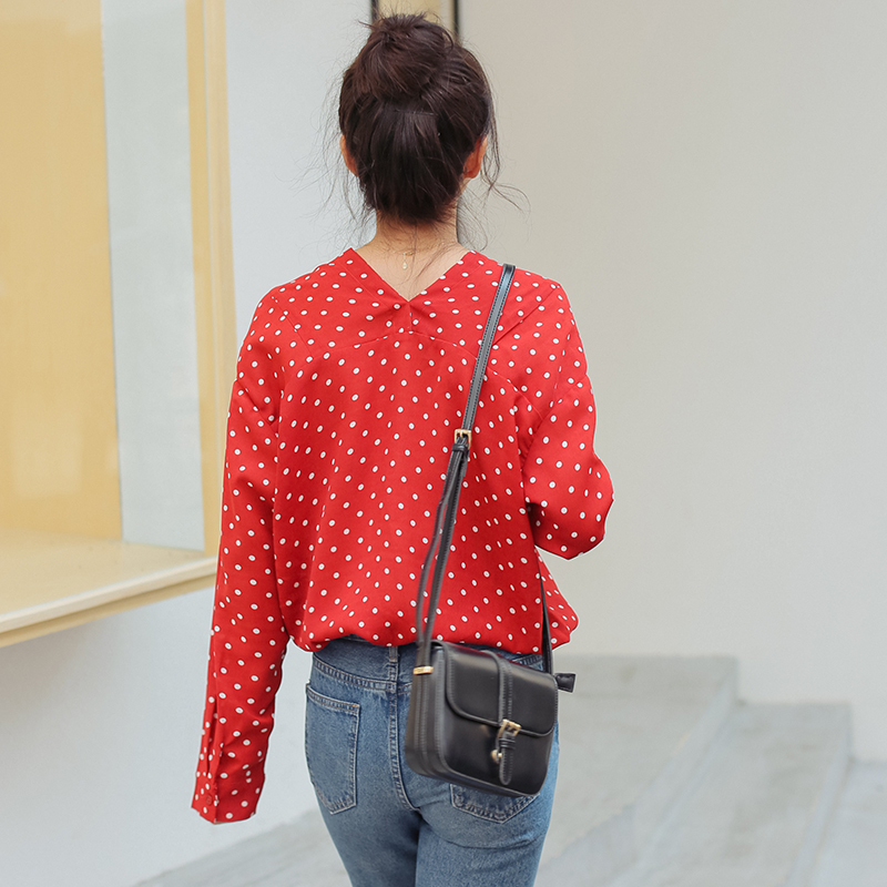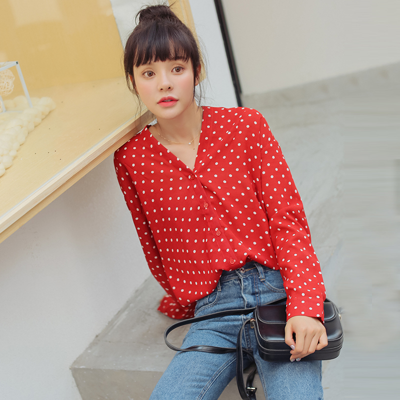 両Vネックですっきりとした着こなしが叶う、ドット柄ブラウスです☆
