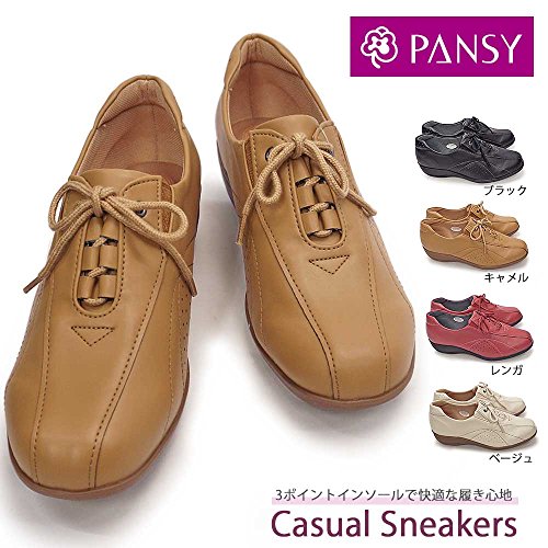 -. Feature : 履き心地に定評のあるパンジーのカジュアルなレースアップシューズです。●クッション性に優れたスリーポイントインソールが足裏にフィット。●履き口の両サイドに付いている伸縮性のあるゴムデザインで着脱楽々。●中敷きは抗菌防臭加工でムレや臭いを抑制します。●軽量で屈曲性に優れたTRソールを使用。●普段のオシャレから旅行にも最適なコンフォートシューズです。●幅、足入れ等・・・・3E表示。甲周りはゆったりしていますが、つま先は細めです。●ヒールの高さ:約3cm●素材:アッパー:合成皮革  アウトソール:合成底●重量:約190g (23.5cm片足で計測の場合。ご希望のサイズによって少しずつ変わります。)●原産国:中国●Pansy 婦人靴 旅行