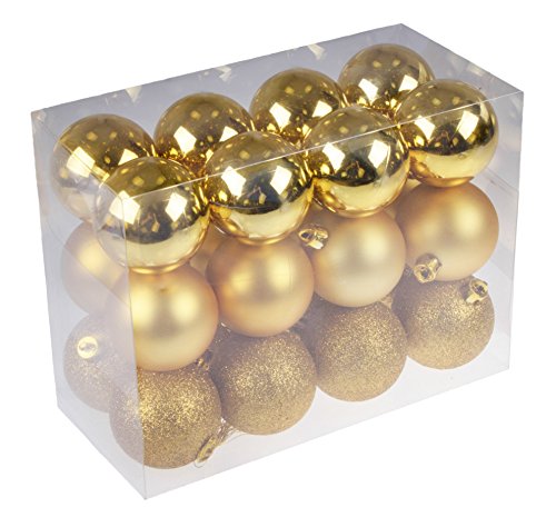 Shatterproof Christmas Tree Ornaments by Clever Creations | Large 60mm Gold Variety Pack Christmas Decor | 24 Piece Set Perfect for Christmas Decorations