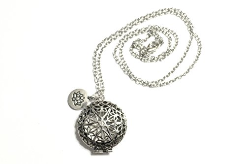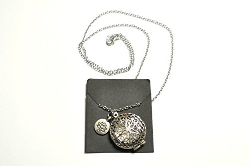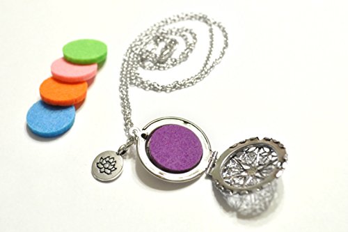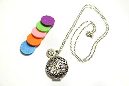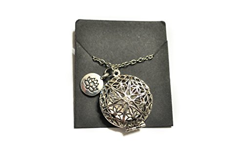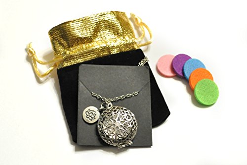 Essential Oil Diffuser Necklace with Lotus Charm – Exclusive Boho Chic Star of Avalon Design Locket with 24” Chain and 5 Washable Felt Pads (Antique Silver)