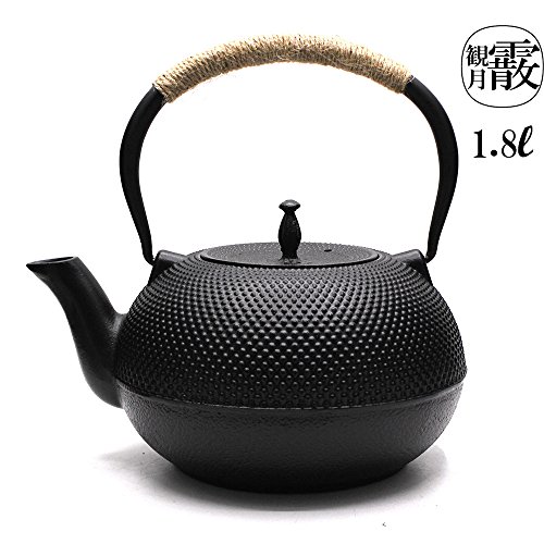 -. Feature : 【ABOUT 1.8KG WEIGHT】【Size】 18cm* 10cm *12cm(7.09inc *3.94 inc*4.72 inc) / 【SPOUT TIP IS BENT DOWNWARDS】This design however does not spill a single drop and easier to stop. / 【1.8L/60OZ CAPACITY】 Roomy capacity enough for 5-8 firends. / 【UNIQUE TASTE】 It is great for making tea with long lasting flavor and taste,cast iron kettle works. Iron kettle keeps the temperature of boiled water more than 100℃, and maintains it for a time. / 【HEATER】IH electromagnetic oven , electric ceramic stove,charcoal fire.