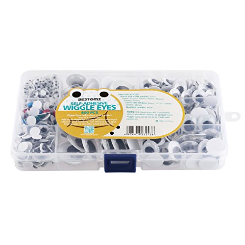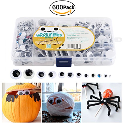 BESTOMZ Halloween Googly Eye Assorted 600 Pcs Wiggle Eyes Pack Self Adhesive with Storage Box for Creative Crafts Decorations