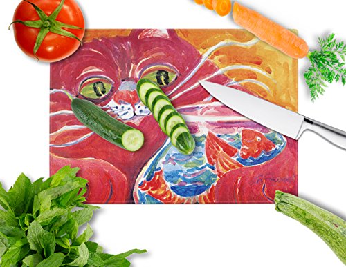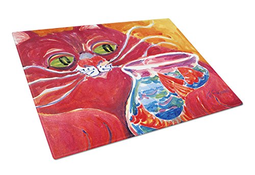 Caroline's Treasures Big Red Cat at the Fishbowl Glass Cutting Board, Large, Multicolor