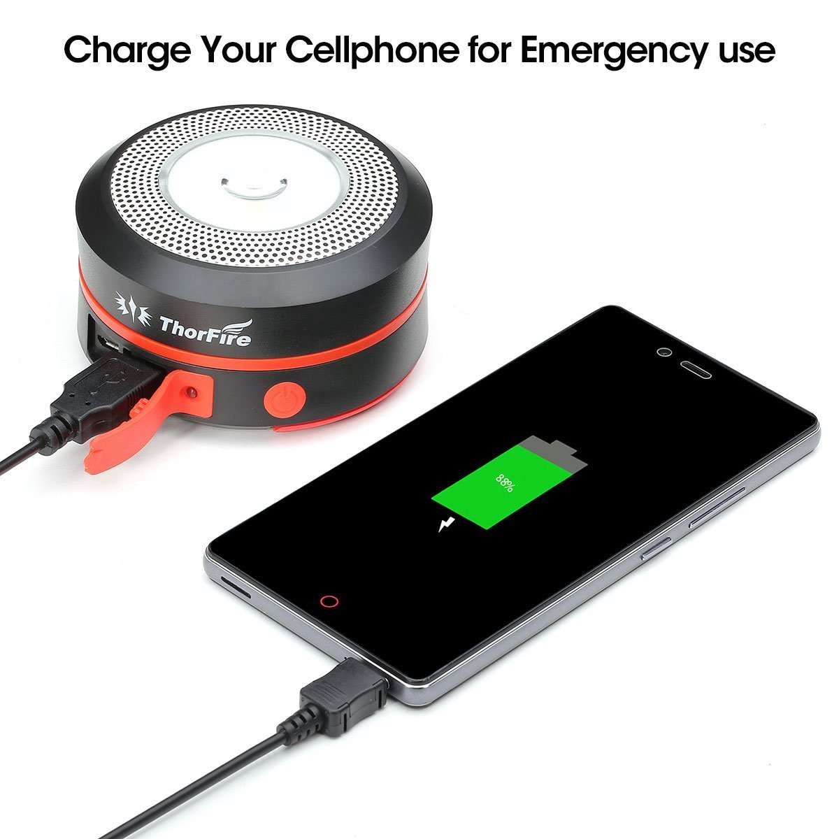 Emergency situation, you can charge the mobile phone via the USB cable.