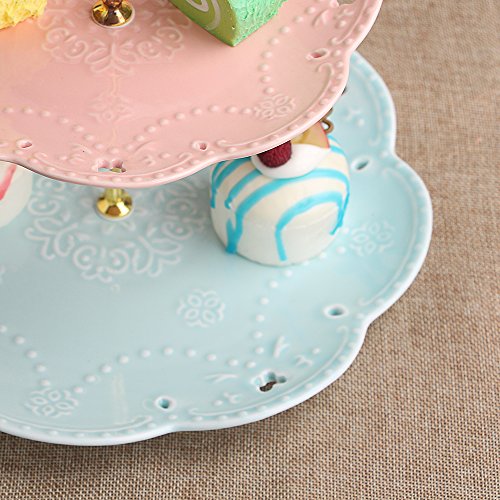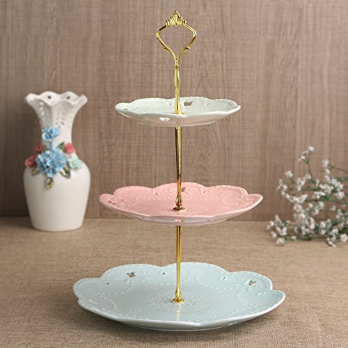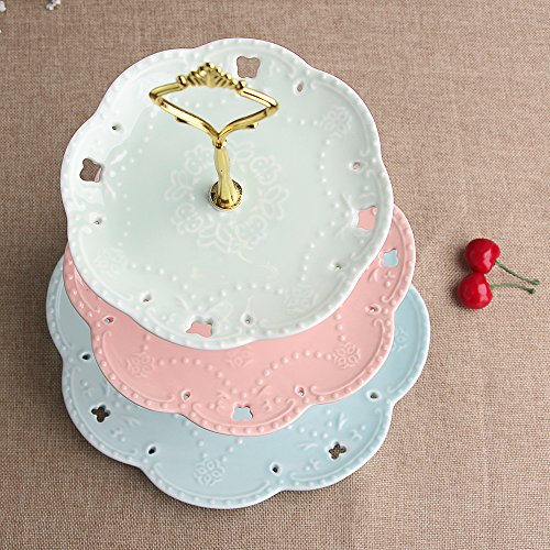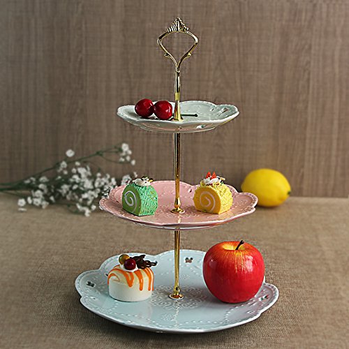 weddingwish 3 Tier Round Porcelain Mixed color Cupcake Stand/Cake Stand/Dessert Stand/Food Display Stand (Golden Stem)