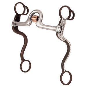 Product DescriptionThis antiqued bit has a 5" sweet iron ported mouth with a copper cricket and copper inlay, 7" S shank cheeks and engraved German silver trim.0