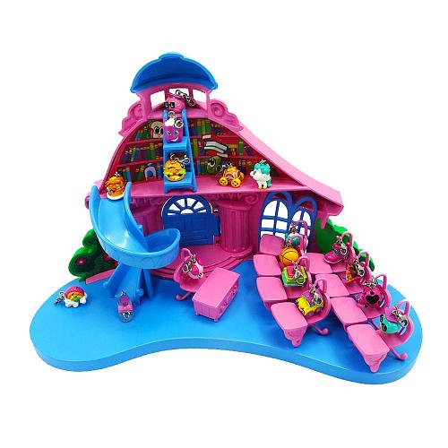 -. Feature : Includes 1 schoolhouse playset, 8 charms, 1 bracelet, 1 backpack. Stickers and collector poster.
