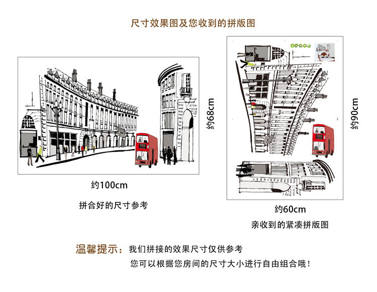 可移除墙贴纸/罗马街道/背景墙贴画墙纸贴客厅卧室墙壁贴纸装饰