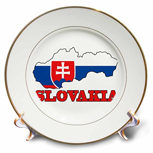 3dRose cp_63202_1 The Flag of Slovakia in The Outline Map of The Country and Name, Slovakia Porcelain Plate, 8-Inch
