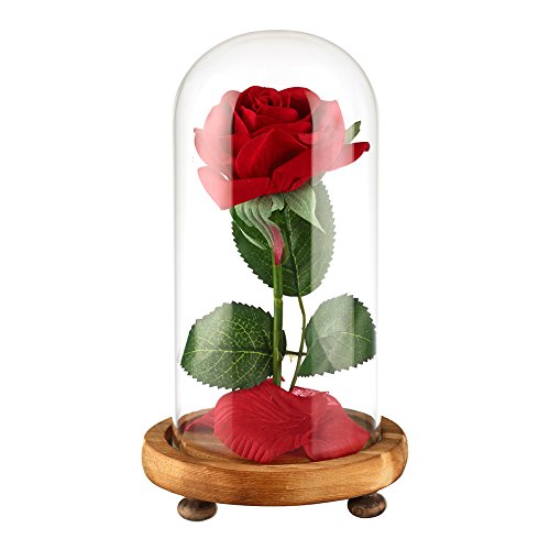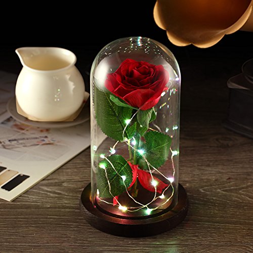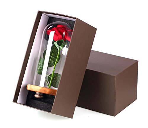 Preserved Flowers, AmuseNd Immortal Flower In Glass Dome and LED Lights Decor on Wooden Base for Home Display Wedding Anniversary Valentine’s Daysary Valentine’s Day