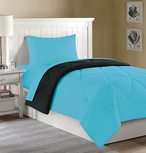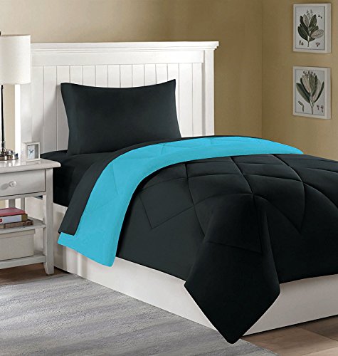 College Dorm Mini Bedding Set: Comforter, Sheets, Pillowcase - 4 PC. - Twin XL (Aqua/Black)