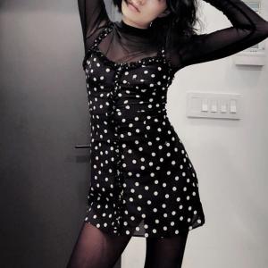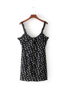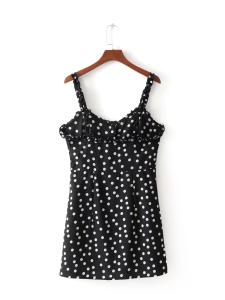 ドット柄ワンピース ミニ丈ワンピース フリル ミニ丈 レトロワンピース モノトーン プチプラ キャミワンピース