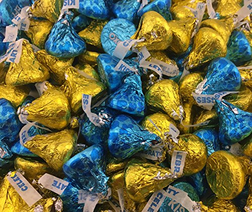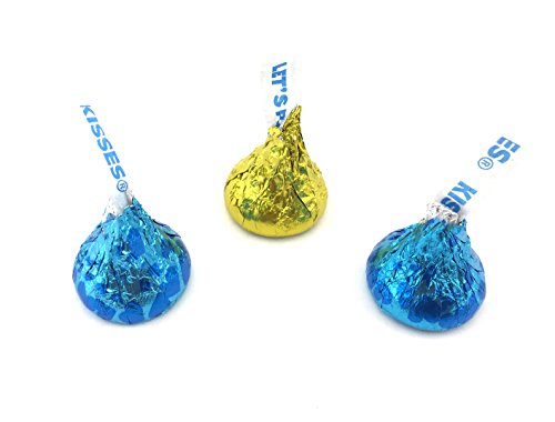 -. Title : Hershey's Kisses Yellow Milk Chocolate, Conversation Milk Chocolate Candy Mix, Yellow Kisses and Blue Kisses Foils (Pack of 2 Pounds)