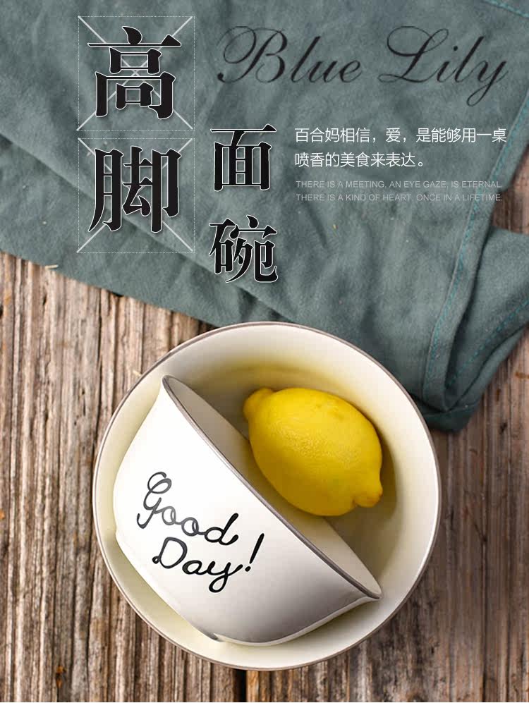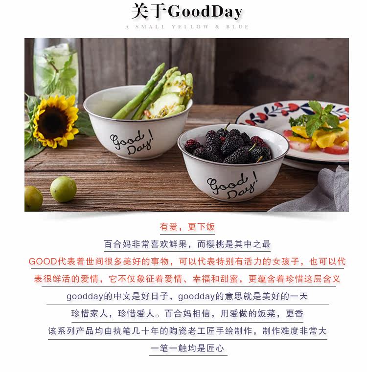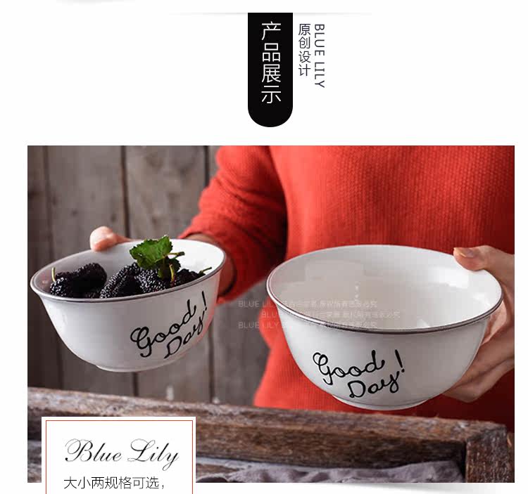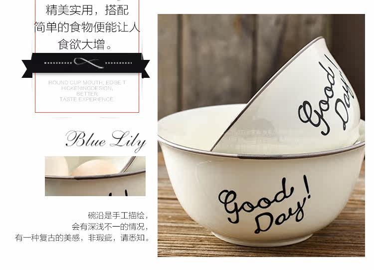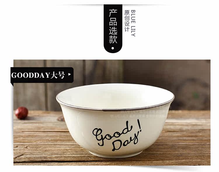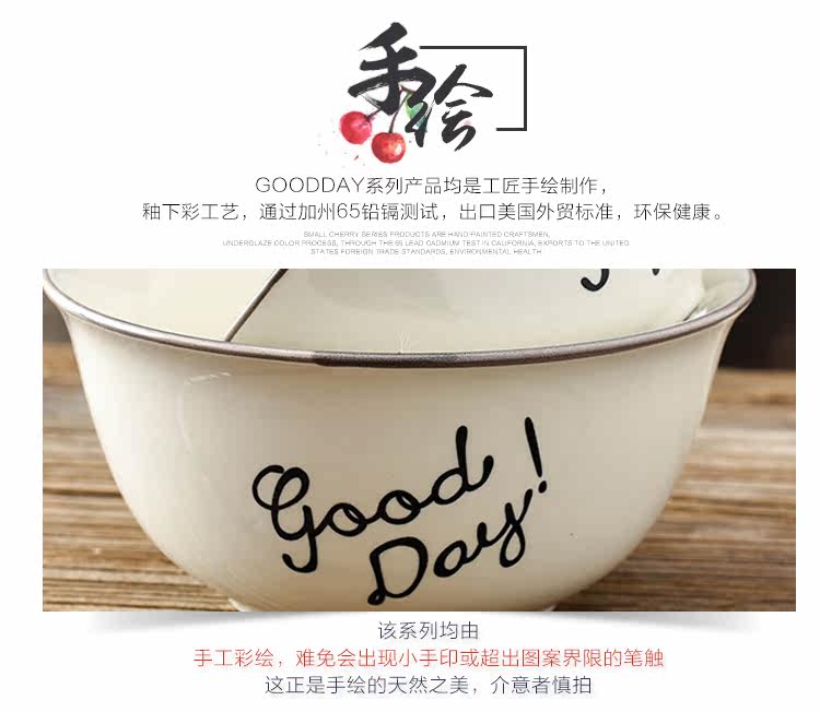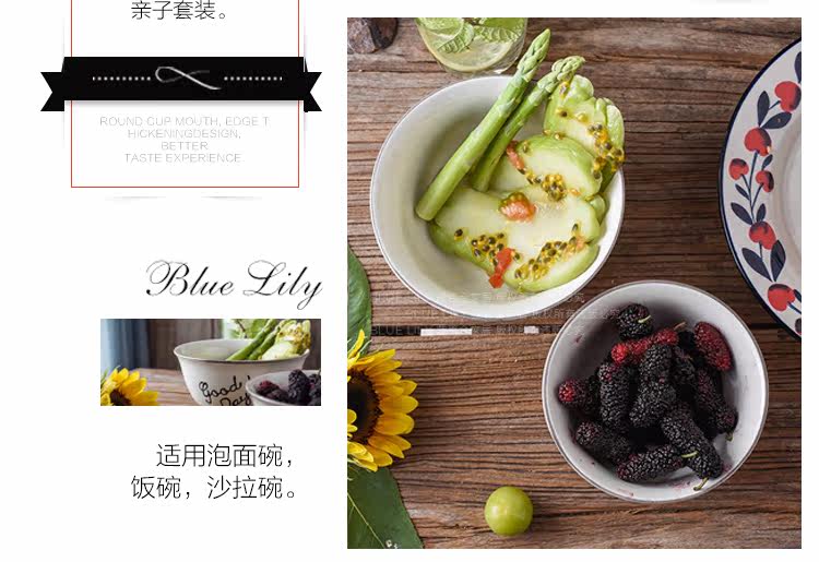 出口日本亲子装超可爱小碗釉下彩英文陶瓷小碗4.5寸饭碗5.8寸面碗