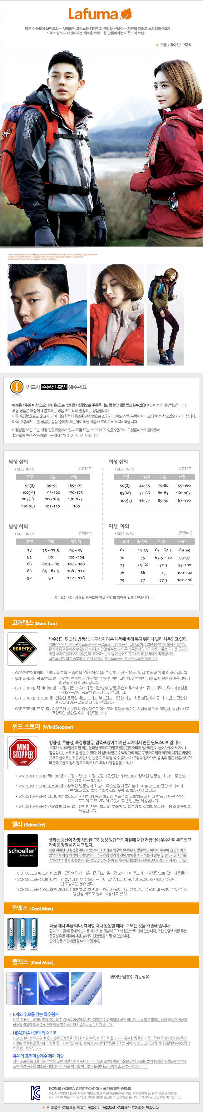 고어텍스 기능성 원단으로 방수성,방풍성,투습성이 우수합니다.