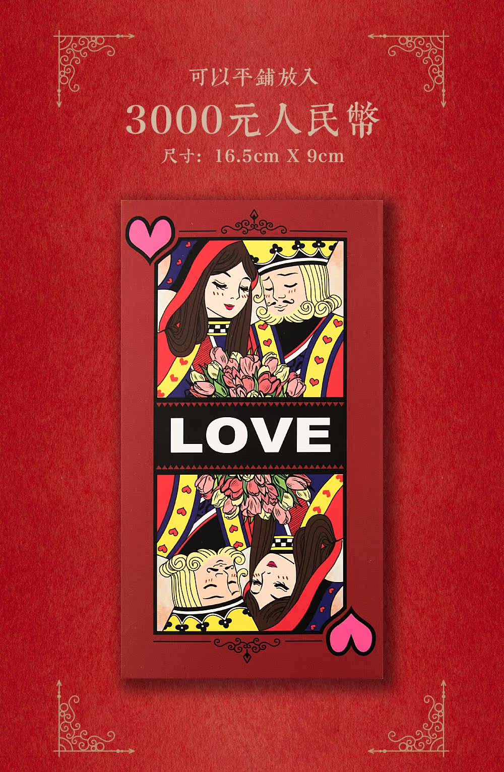扑克牌千元百元定制结婚红包袋婚庆创意爱情利是封