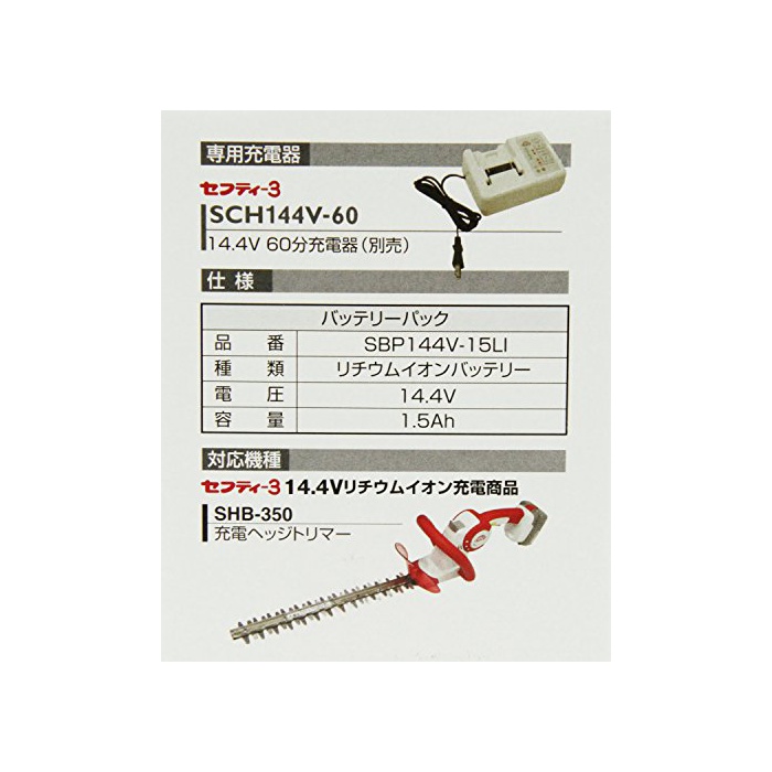 원본상품명:セフティ3 14.4V リチウムイオン バッテリパック 充電式ヘッジトリマ SHB-350用 SBP144V-15LI