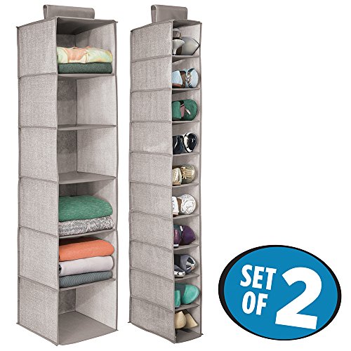 mDesign Hanging Closet Organizers, 6-Shelf Sweater Organizer, 10-Shelf Shoe Organizer - Set of 2, Linen
