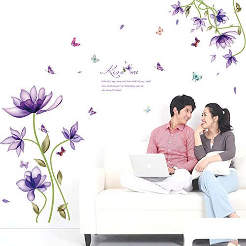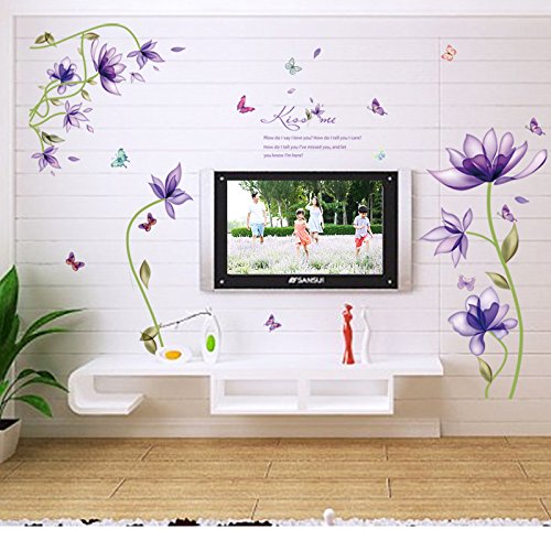 Amaonm Hot Fashion Creative Purple Fantasy Flowers Wall Decals Kids room Wall art Decor Flower Vines Wall Stickers Murals for BedrooM living room TV Sofa Background Decorations