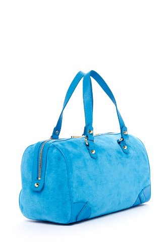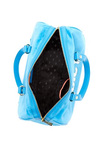 Cotton satchel with silver sequin embroidered logo design, pebbled leather straps and trim, and gold-tone hardware, 13.5in at widest point x 8.5in high x 7.5in deep, Leather handles have a 6.5in drop, Zippered top, Black fabric lining with two open top pockets and one zippered pocket, ImportedFeature