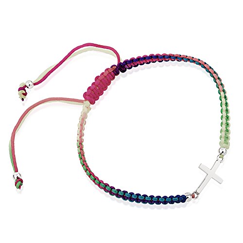 -. Title : 925 Sterling Silver Small Sideways Cross Adjustable Drawstring Wrap Bracelet, 6-9" Color Variations