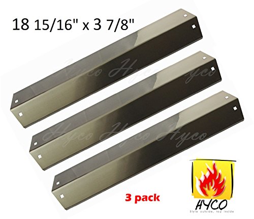 - Hyco hyJ505A (3-pack) Universal Gas Grill Replacement Stainless Steel Heat Plate for Chargriller 3001, Chargriller 3030, Char Griller 4000, Char Griller 5050, Char Griller5252 Gas Grill Models; Dimensions: 18 15/16" x 3 7/8" Material: Stainless Steel