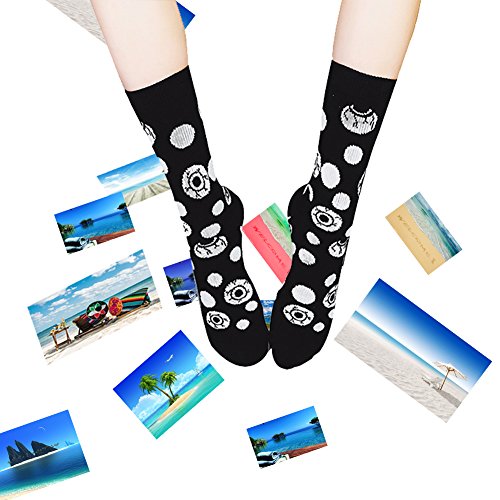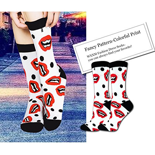 -. Feature : High Quality Crew Socks:Funky Dress Socks are made of 70% Cotton,15% Nylon,13% Polyester,2% Spandex.Fit for US Women socks size 6-11, come to around the calf. Soft cotton perfect for feet health. Comfortable, lightweight and sweat-wicking, always give you fine care and company both for daily wear and outdoor activities. Long lasting,durability good quality,stay up well and look cool when shoes are off. / Christmas is coming! Try these crazy patterned dress crew socks! Various patterns and vivid colors for you to choose, fancy designs make you be the focus in the crowd; cool, young, and super eye-catching.The unique style and cute pattern socks can be matched with any clothes you choose to wear today,making your life more better! / Our Socks delivered by Amazon FBA Only, No Merchant Delivery.We offer different funny pattern cotton dress socks,they are elastic and perfectly make it suitable for your feet;Easy for Care:Keep your socks looking their best for years to come,WXXM socks can be washed by machine or by hand; Machine wash cold with no bleach and hang to dry. / LUXURIOUS GIFT BOX: Our WXXM funky crazy women dress crew socks 4 pairs are packaged with delicate boxes, they are an ideal gift for all ladies.WXXM Women Funky Dress Socks make the perfect present for everyday wear, dressier occasions,office work and outdoor activities.You can also choose them as Halloween,Thanksgiving,Birthday,Christmas Gifts. / Quality Guarantee:100% satisfaction guaranteed, 45 days free exchange and returns on WXXM's dress socks, plus 180 days warranty. Our mission is to have our customers extremely satisfied with the best quality dress socks they purchased, so if you haven't so, please take contact us and we will reply to you within 24 hours and give you a satisfactory solution!