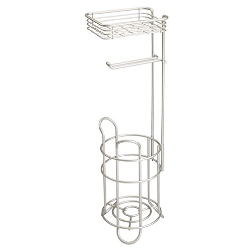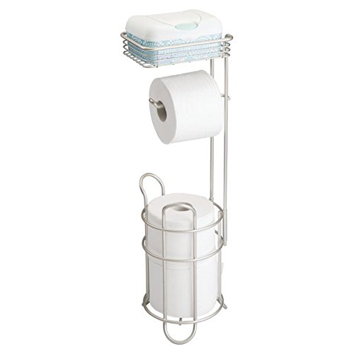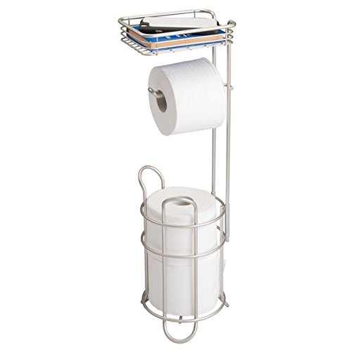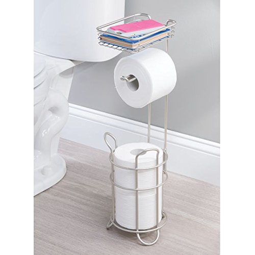 mDesign Toilet Paper Dispenser and Reserve with Storage Shelf for Bathroom Storage - Satin